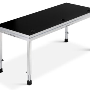 200 x 80 cm DJ & sound engineer table made with a robust aluminium frame and 15mm- thick weather-resistant phenolic birch plywood panel. The DJ table comes with 3 cable access holes.