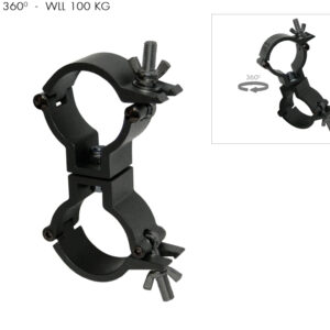 Light-weight aluminium double swivel clamp coupler (Swivelling 360º). Designed to be used on trusses / tubes with an external diameter from 48 mm to 51 mm.