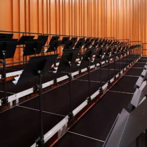 The AT/TM-01 music stand can be used at the same time as the mic. stand for platforms ref. PM/TM-01; both are very practical accessories for any kind of event that is carried out in a reduced space, with a small platform/stage.