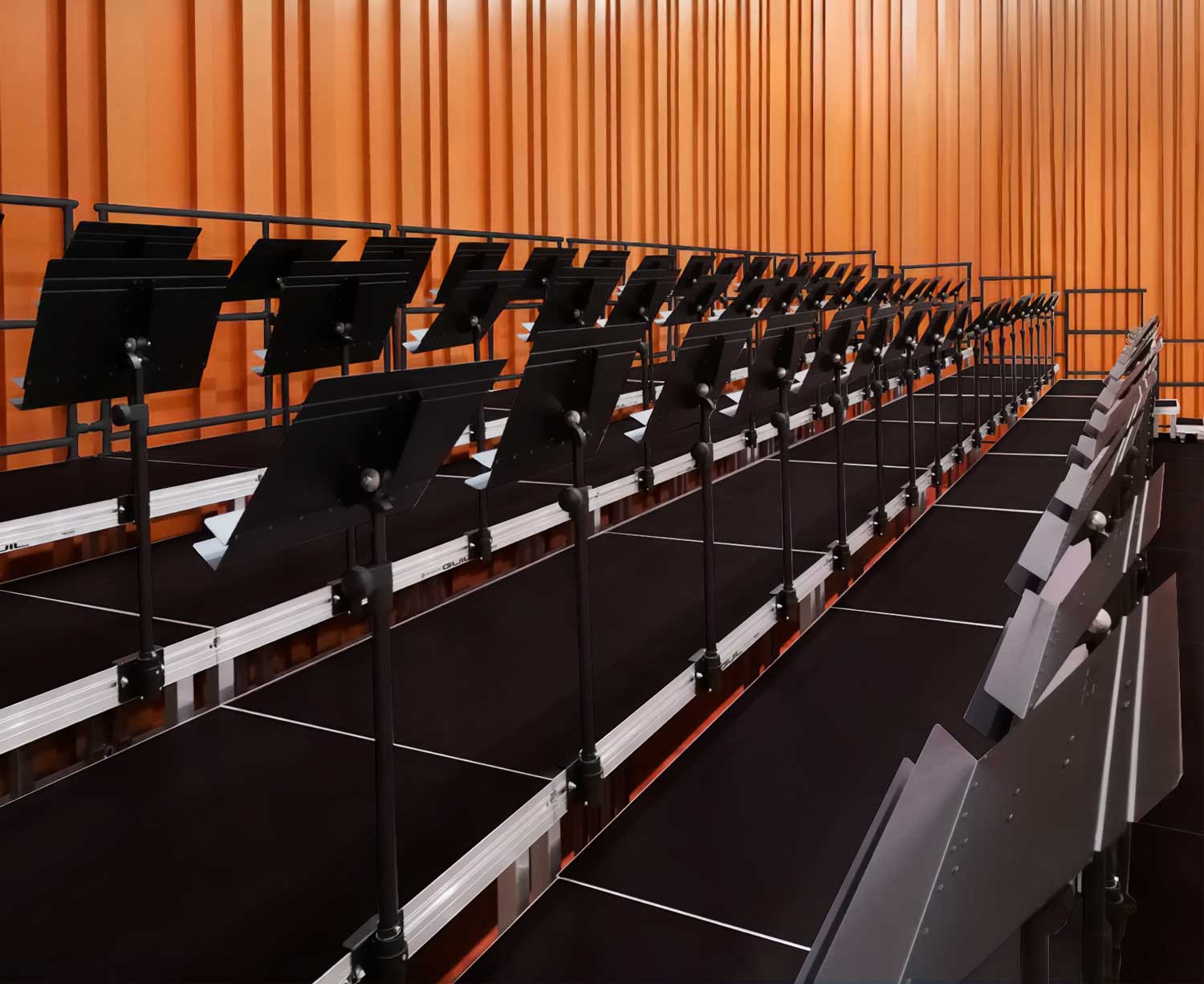 Practical metallic music stand that can be fitted to any of our platforms (any version or size) by attaching it to their multifunctional rail.