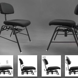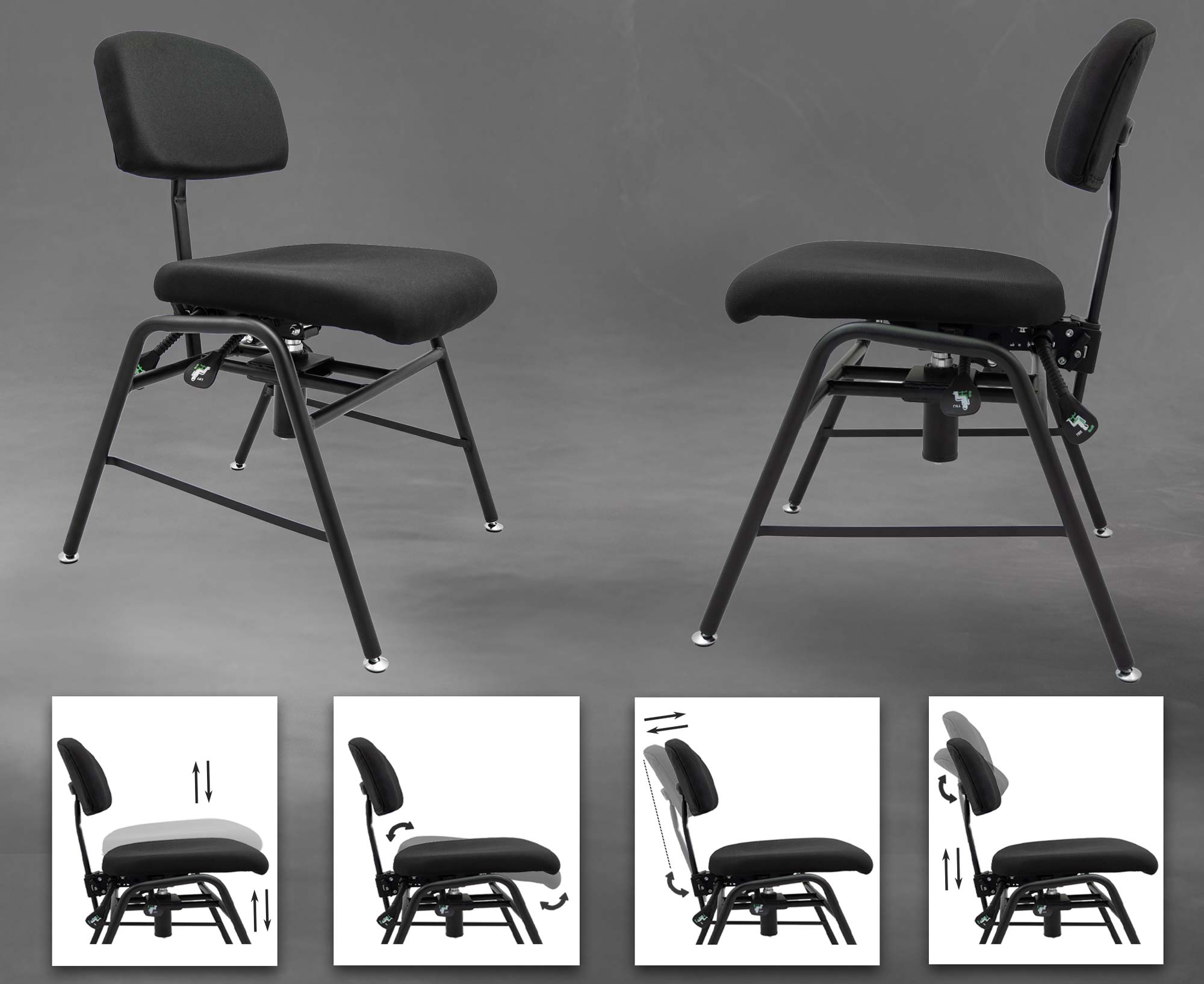 To be adjusted to all sitting positions the SLL-100 Orchestra Chair has two independent adjusting mechanisms: