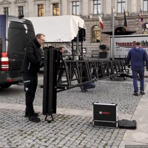 The TMD-570 Line Array Lifting Tower is a compact, exclusive design by GUIL, specially created to reliably lift Line Array systems of up to 800 kg (1,760 lb) to a maximum height of 8 metres (26 ft 3 in) using an electric motor. GUIL’s engineers have created a totally innovative tower, certified for outdoor use under European norm EN 13814.
