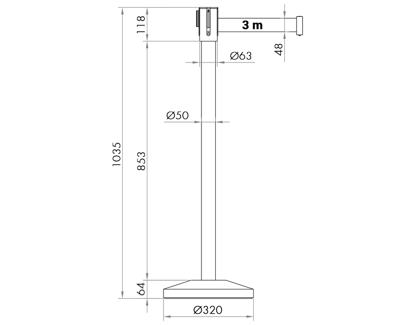 Its special design with an interchangeable head allows a single post to be used for different barrier options; just changing the head piece with red belt for the one with black belt (ref. PST-CB/2) or the stylish 4-way head to connect plaited rope (ref. PST-CB/M). This special system allows you to cut down on costs and save on storage space. Likewise, if you need to replace any of its components, they can be ordered independently (base, pole, head). You will not have to buy a new post!