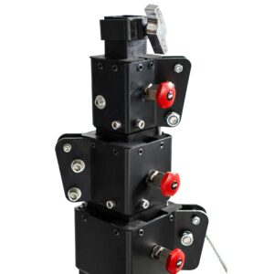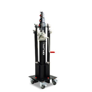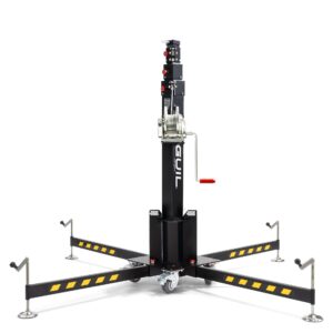 This wind-up stand consists of four telescopic sections made in reinforced steel and finished in a textured, black, anti-scratch, powder coating (Epoxi). This finish makes the tower suitable for outdoor use, guaranteeing maximum corrosion resistance.
