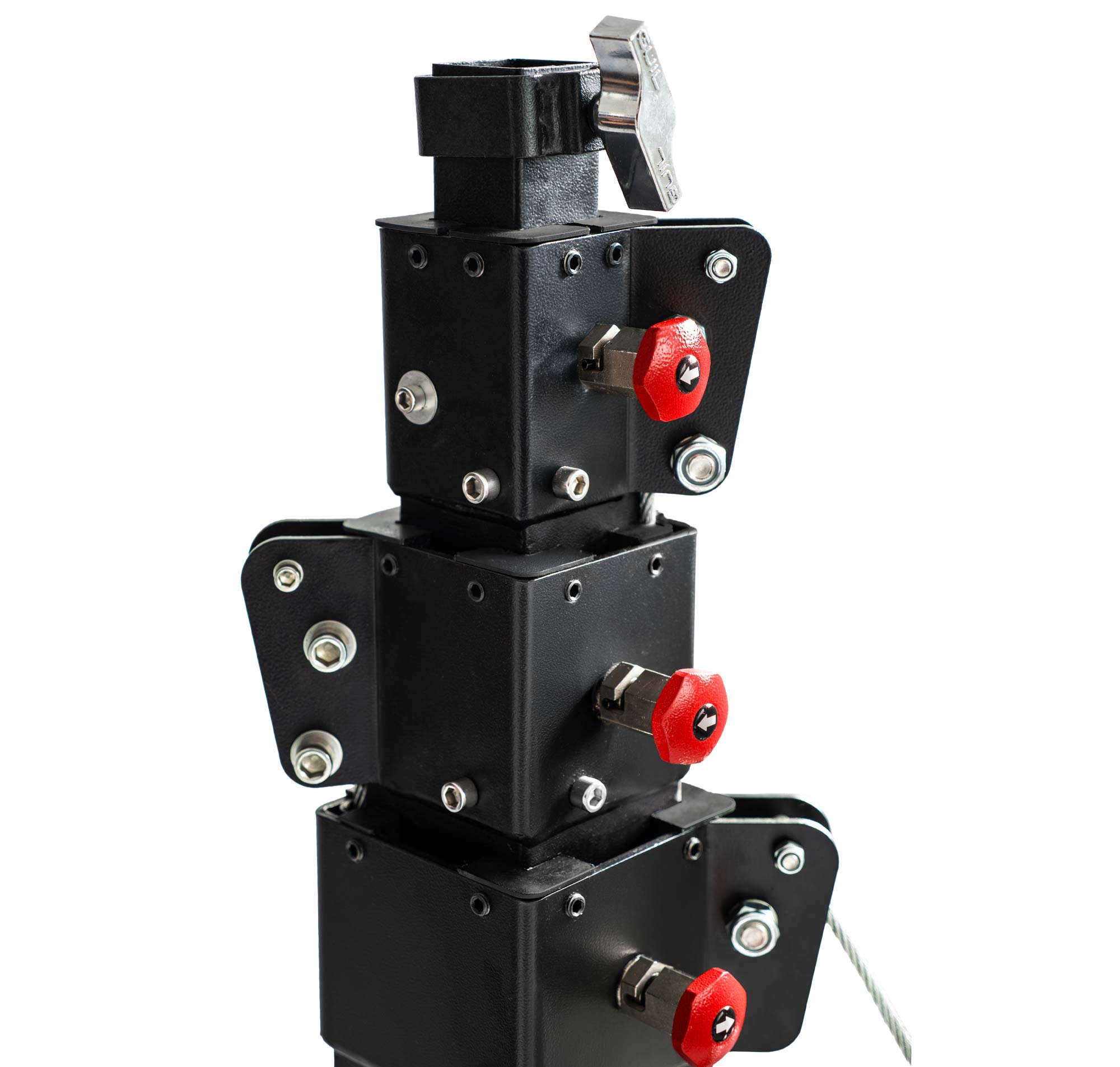 2. Internal cushioning system to prevent wobbling of the mast sections when extended (on all four sides).