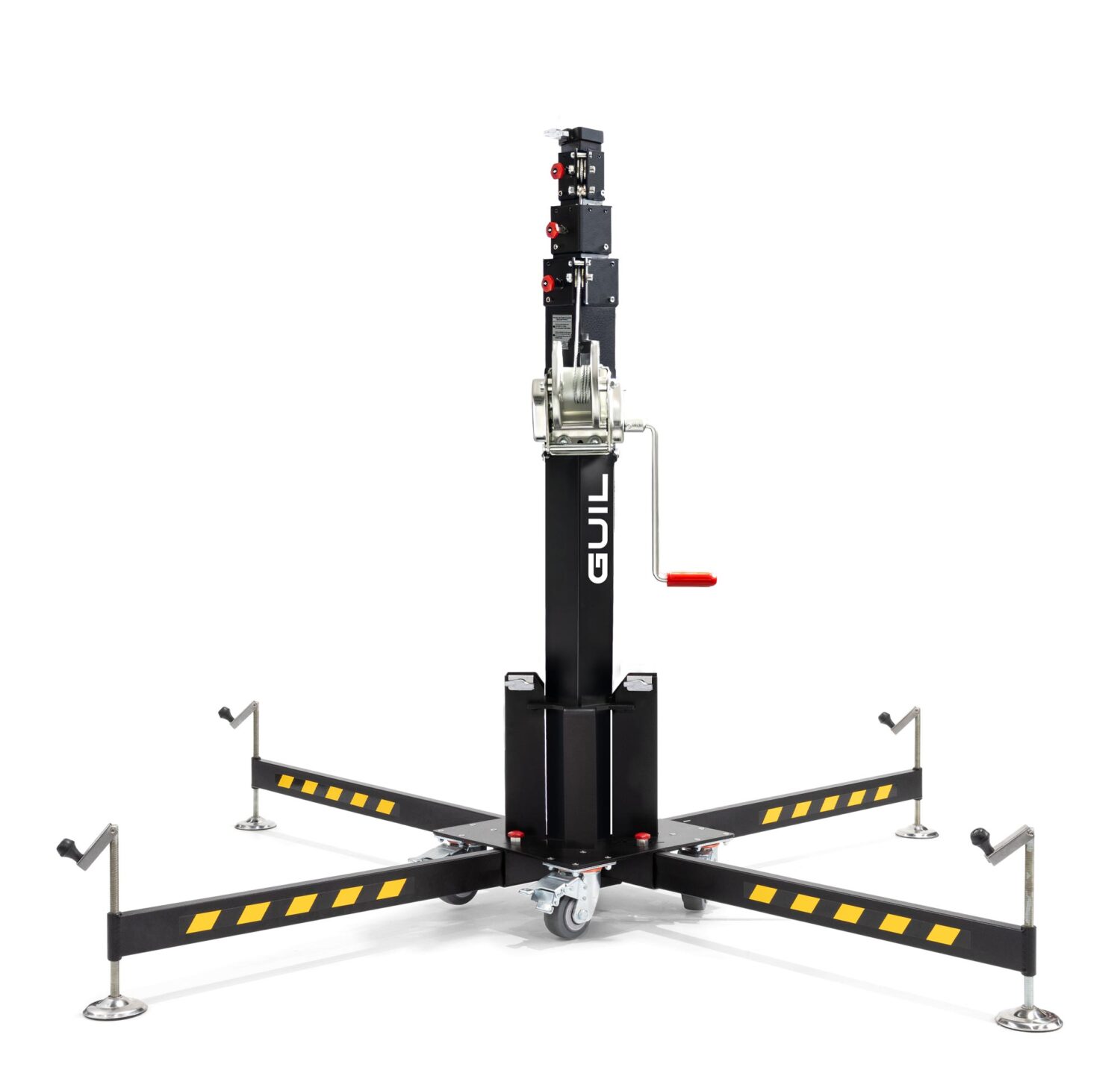 Telescopic lifting tower specially certified to lift loads of up to 180 kg (397 lb) to a maximum height of 4.50 metres (14 ft 9in).