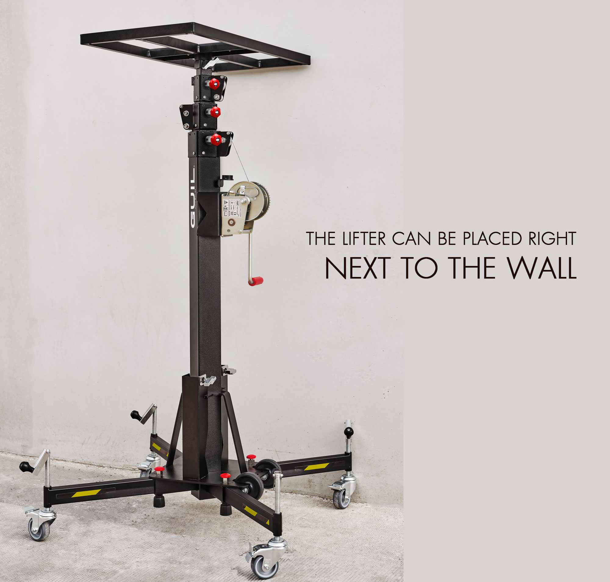 ► SAFETY AT WORK: GUIL lifters improve security for installers, eliminating risks from handling heavy or bulky devices at height. The ELC-730/R holds these items while they are lifted, connected and fastened in place, so that the user has their hands free to do the installation and fastening work without having to support the weight of the unit.