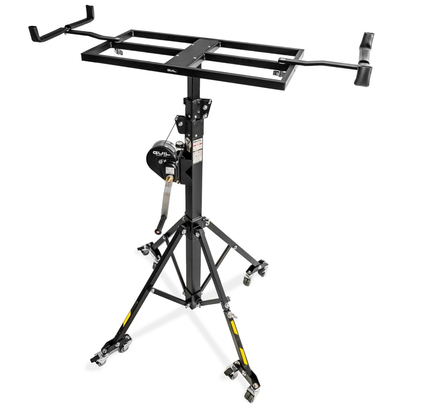Su elevador ELC comienza a ayudarlo incluso antes de llegar al lugar de la instalación: subir un toldo u otro objecto de 4 o 5 metros por las escaleras es una tarea muy difícil, pero con un elevador GUIL, puede levantar el toldo desde el suelo directamente hasta el balcón/terraza donde se va a realizar el montaje. Una vez que todo su material esté preparado para el montaje, su elevador ELC levantará su toldo, pérgola o solárium hasta la altura donde se necesite, y lo sustentará mientras se realiza la instalación.