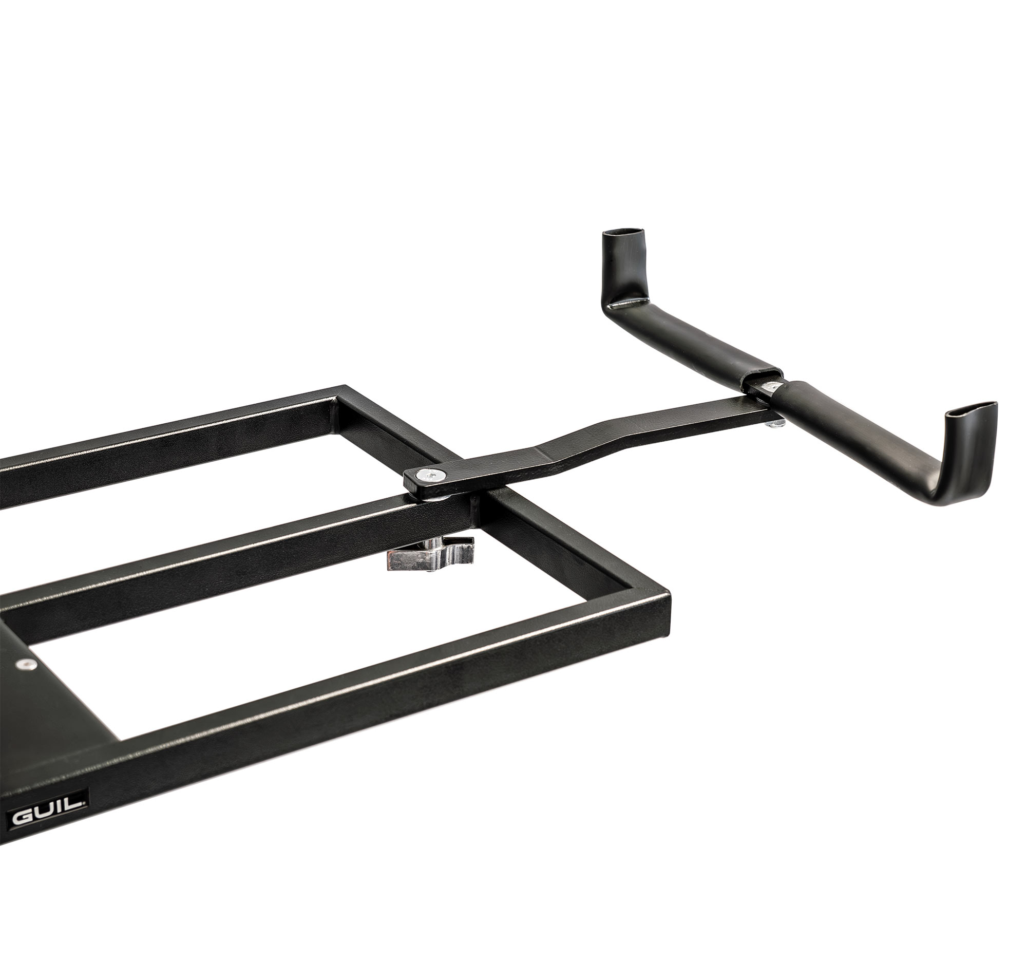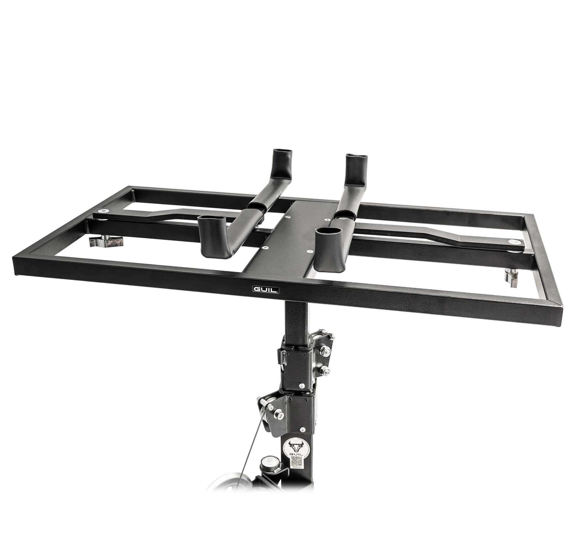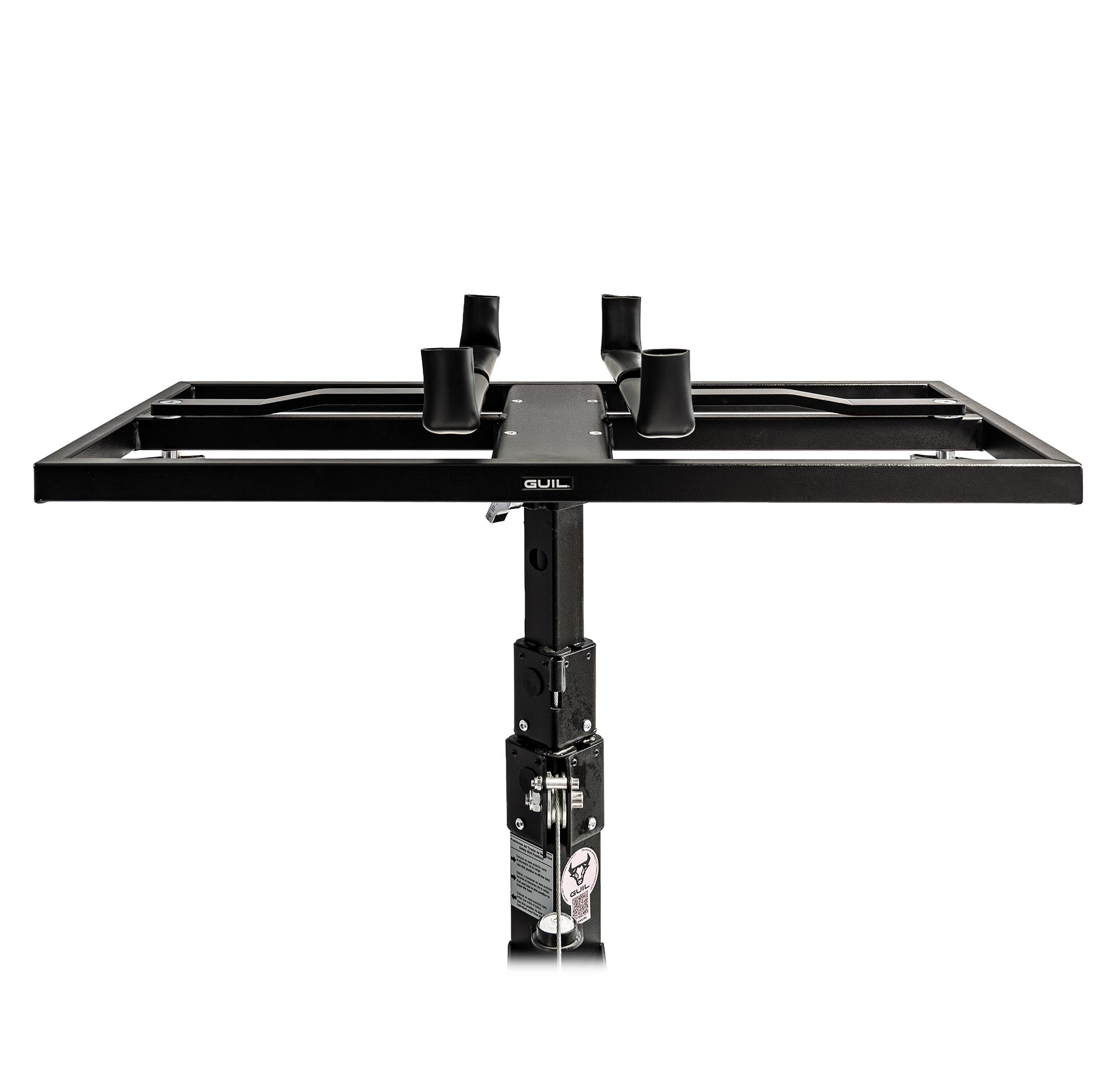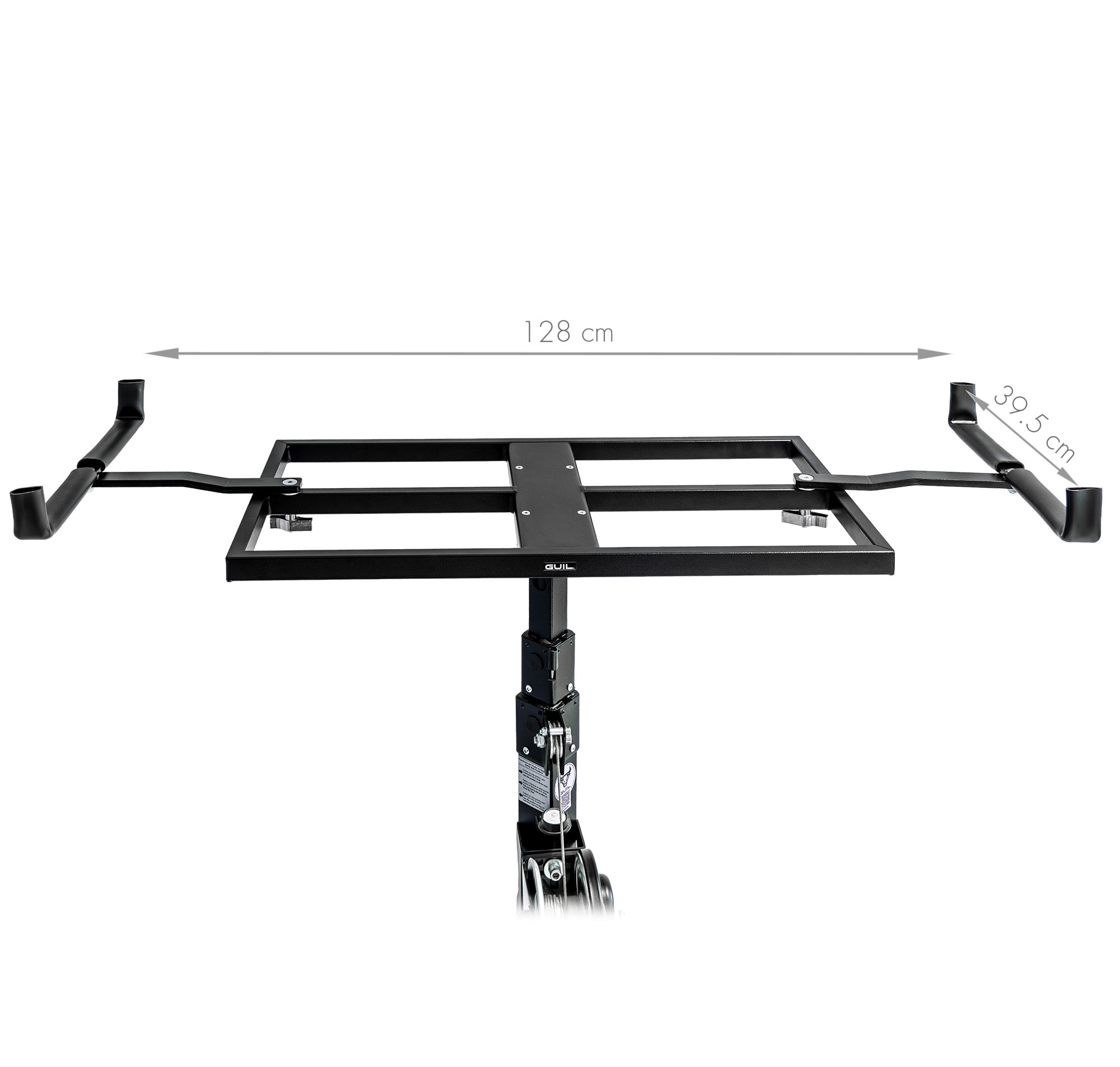 El adaptador BC-12 consta de una plataforma de carga con dos brazos desplegables diseñados para sujetar toldos y elementos cilíndricos. También se puede utilizar como plataforma estándar simplemente desmontando los brazos.