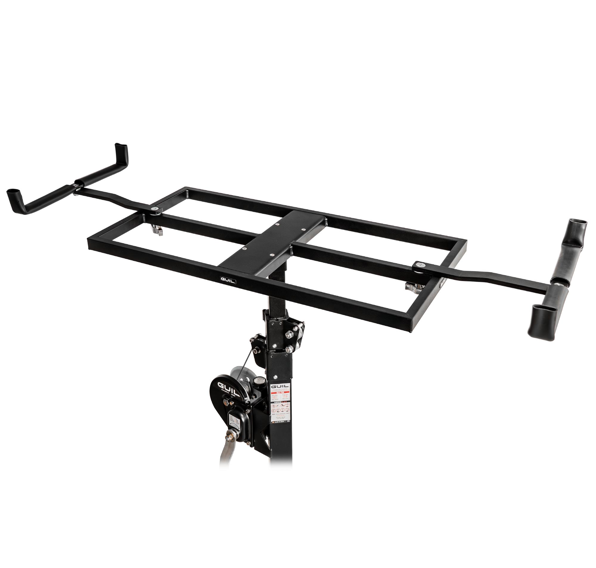 La bandeja para la instalación de toldos ha sido diseñada para sujetar y elevar toldos, objetos cilíndricos y/o voluminosos. La carga está asegurada por dos brazos forrados para proteger el toldo. Sus brazos de sujeción se fijan mediante pomos ergonómicos metálicos, facilitando la rapidez y comodidad en el montaje.