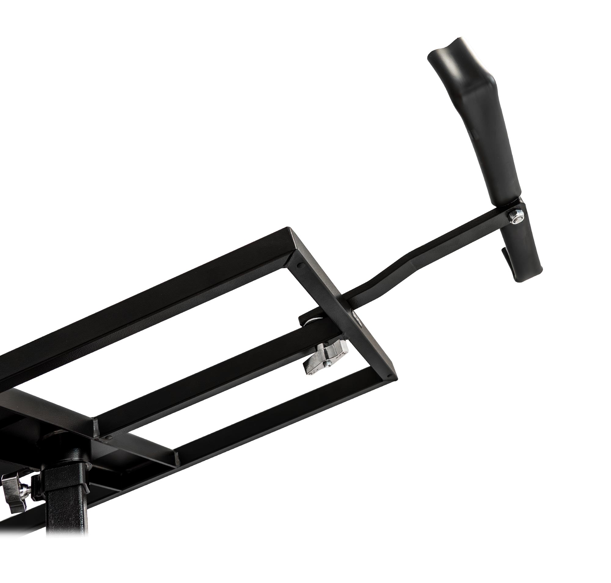Para un cómodo transporte y almacenamiento, los pomos se pueden aflojar para girar los brazos hacia el centro de la plataforma, ocupando menos espacio.