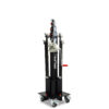 La torre está equipada con cuatro patas desmontables dotadas de husillos niveladores de doble paso (mayor velocidad), con discos antideslizantes de acero cromado y caucho inyectado que garantiza un perfecto ajuste a todo tipo de superficies.
