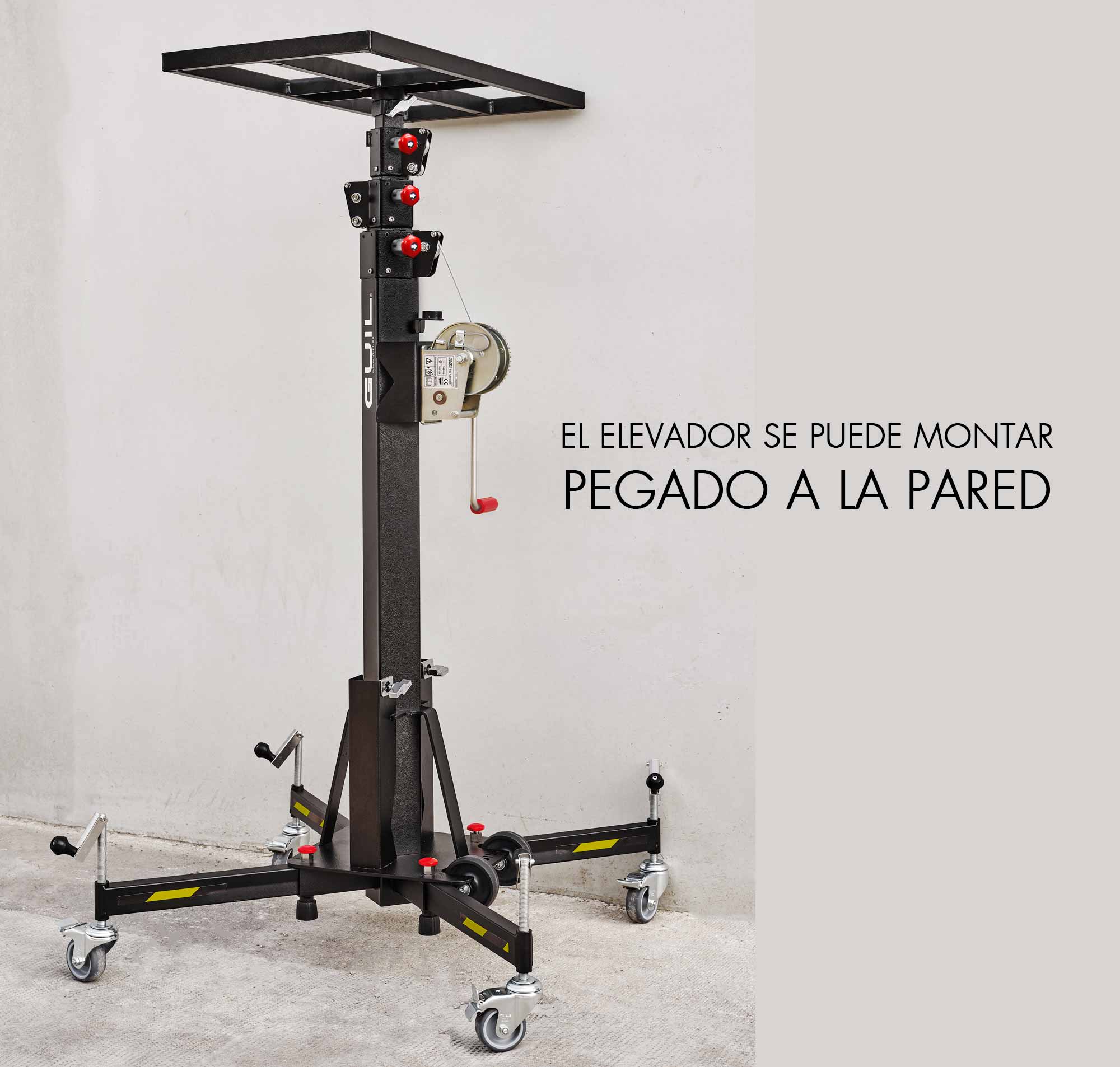 ► Provisto de cuatro patas equipadas con ruedas niveladoras para un perfecto ajuste vertical y un mejor desplazamiento del elevador.