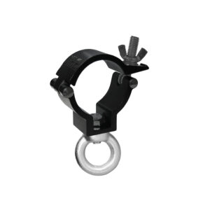 Abrazadera de aluminio con argolla, para cargas de hasta 100 kg. Diseñada para una fijación segura a trusses / tubos con diámetro externo de 48 mm a 51 mm.