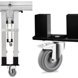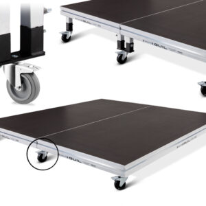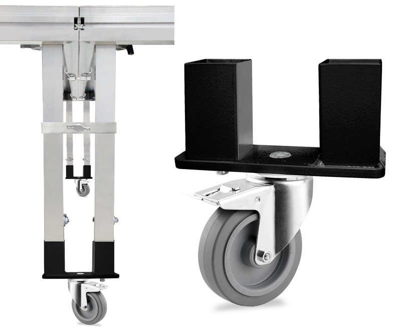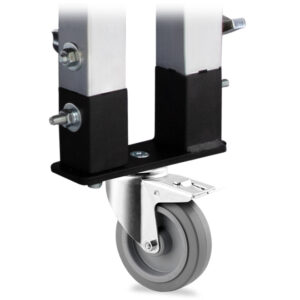 Adaptador con rueda con freno para unir dos tarimas mediante 2 de sus patas o directamente mediante 2 de sus escuadras. Diseñado para ser utilizado con nuestras tarimas referencias: TM440, TM300 y TM440XL.