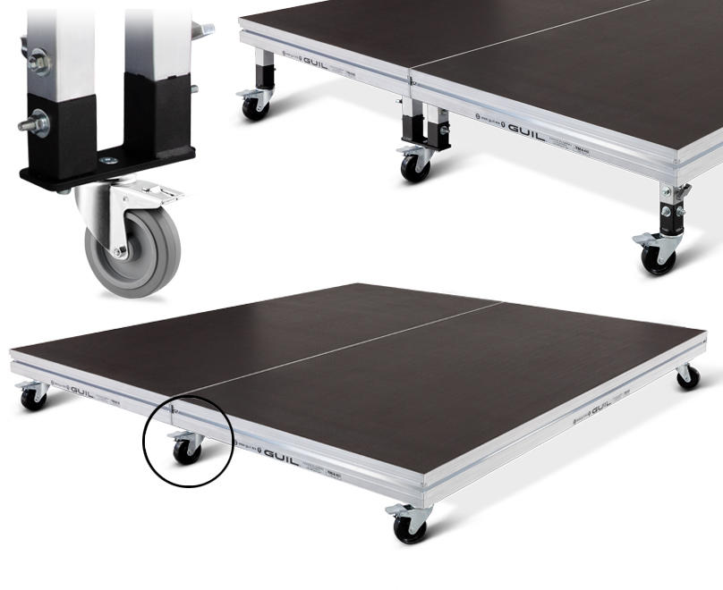 Con el uso de nuestro adaptador APF-2/5 y los adaptadores CQR-5 y APR-4/5, conseguimos convertir tus tarimas en un escenario móvil.