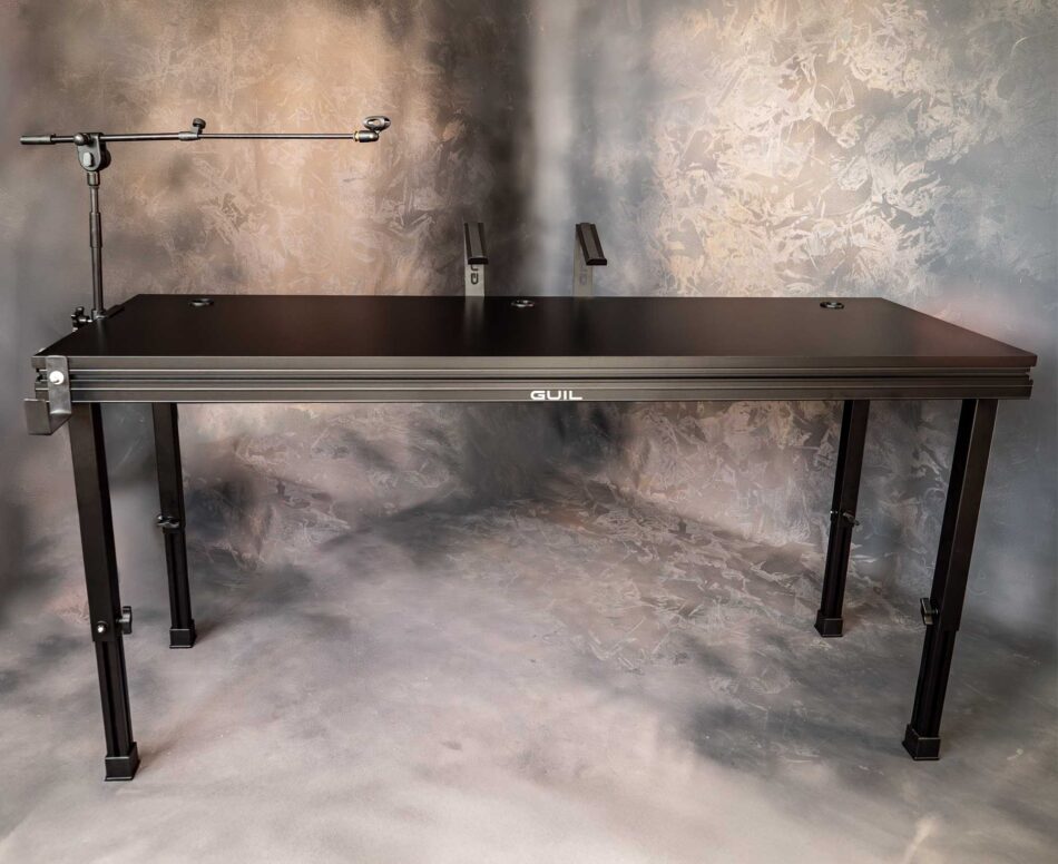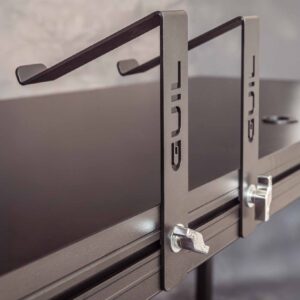 Bandeja ajustable para colocar diferentes dispositivos (Tablets, portátiles, etc.) en las mesas para DJ y tarimas GUIL (cualquiera de sus versiones y tamaños), ofreciendo un espacio extra al usuario de la mesa.