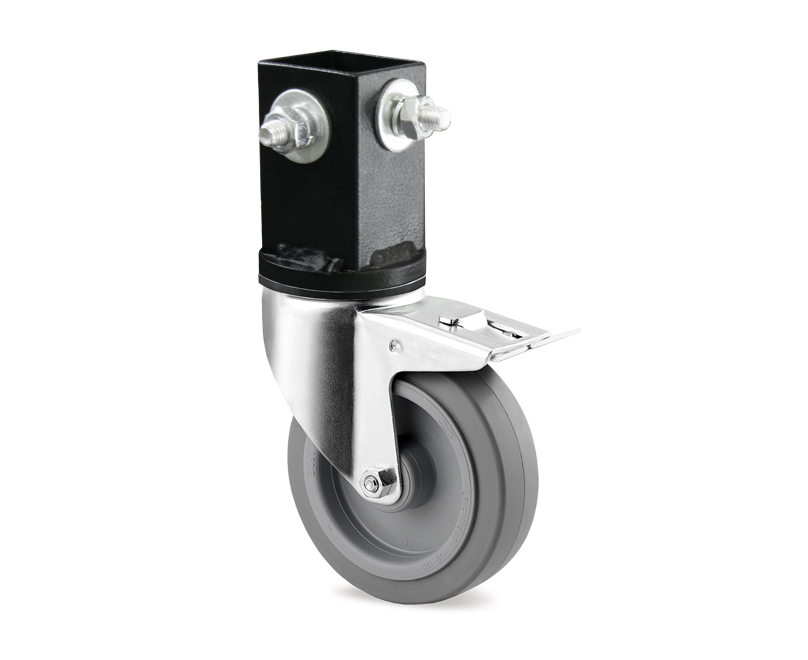 Rueda giratoria con freno: | Ø 100 mm (Carga máxima por rueda: 150 kg – Color: Gris) |