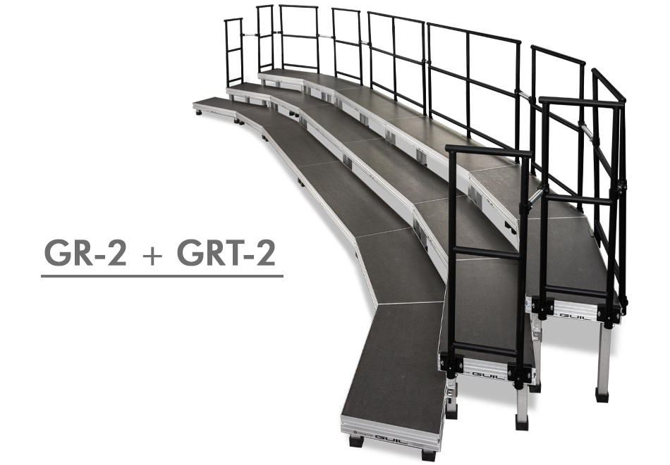 Los módulos GR-2 se pueden utilizar tanto para instalaciones permanentes (uso en interiores) como temporales (uso en exteriores). Gracias a su diseño polivalente, los módulos GR-2, nos permiten configurar gradas con tantos niveles como sean necesarios. Contacte con el departamento técnico para diseñar la grada de coro que más se ajuste a sus necesidades.