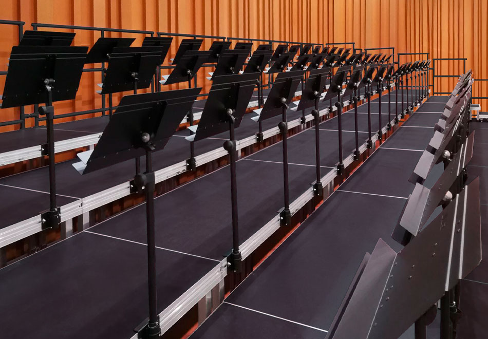 Las gradas de coro GR-2 combinan: diseño, con resistencia, versatilidad y estabilidad. Su rápido y sencillo montaje, junto con la posibilidad de fabricar cualquier forma, hace de nuestras gradas la solución perfecta para cualquier tipo de coro; tanto para los que actúan de pie como para los quieren colocar sillas (medidas especiales).