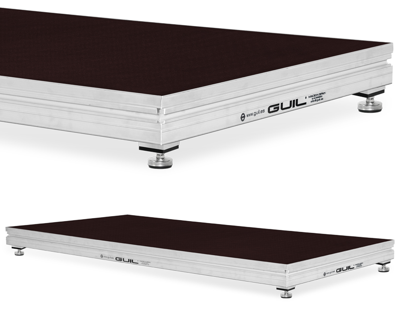 La tarima tiene un sistema de anclaje de patas muy rápido y reforzado. Las patas se fijan a las escuadras internas del marco mediante el pomo metálico de diseño ergonómico; garantizando máxima fijación y resistencia.